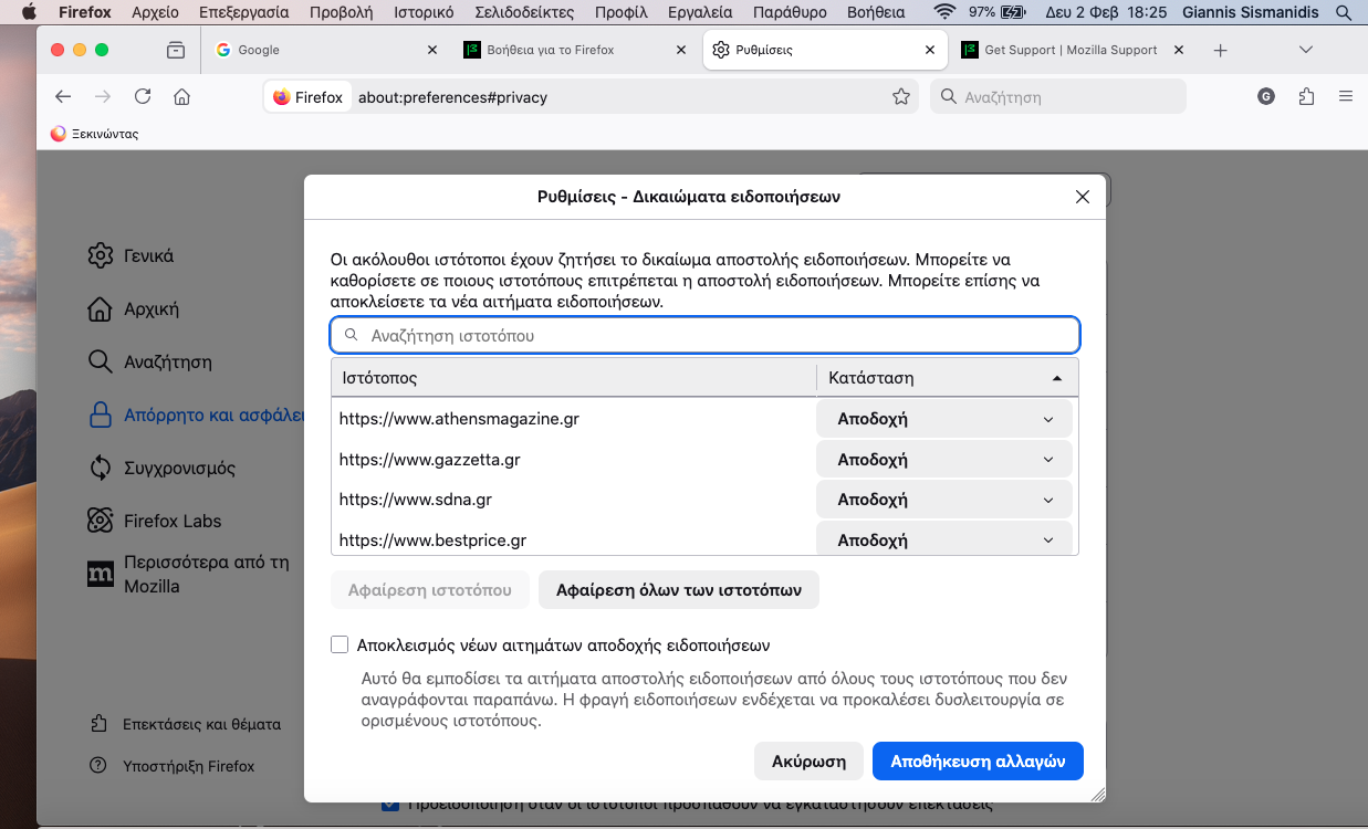 Good evening, I have a problem with notifications, they suddenly stopped coming from the websites on my Mac computer, please what should I do?Please, if you can fix it, because I don't know, I will also send you the version of the rest of my Mac's accountant. as well as the problem with notifications not coming to me. as well as the Firefox update.