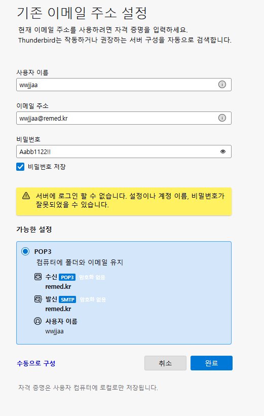 I was able to locate the server, but it seems that the password is incorrect. I entered the password for the email service I am currently using, but it does not work. Could you please help me regain access?
