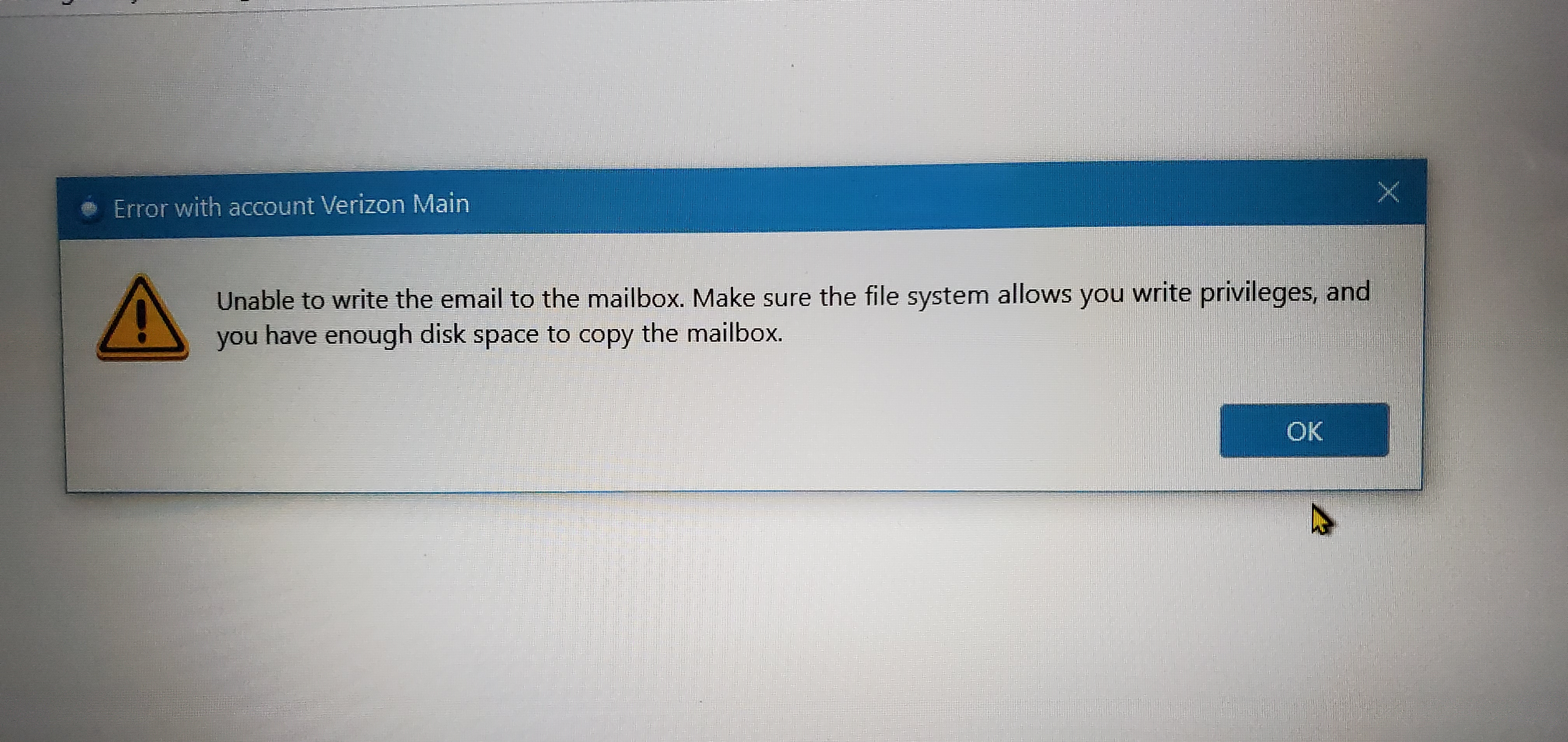 I believe I'm on the newest release. I'm not low on disc space and I don't know how it would suddenly not have write privileges. I was archiving some of last years emails and it stopped shortly after that.