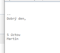 Zkoušel jsem změnit podpis, ale uspokojivě se mi to nepodařilo. Při vytváření nového emailu se mi celý podpis včetně oslovení "Dobrý den," zařadí pod dvě pomlčky. Viz příloha. Navíc to je formátované celé jako podpis, ale to by šlo vyřešit asi html.