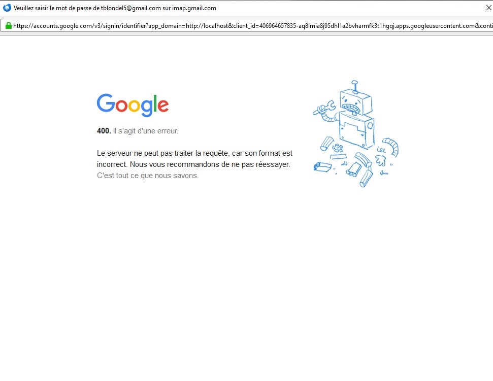 I want to create a Gmail account under Thunderbird and it asks me to connect via a Google account then Error 400: why? (see attached files in french)