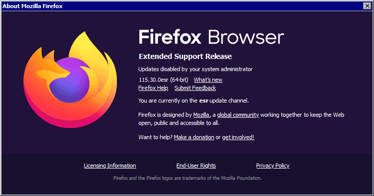 Firefox 115 ESR is based on the old Firefox 115.0 Released July 4, 2023 but with allowed stability security fixes since.