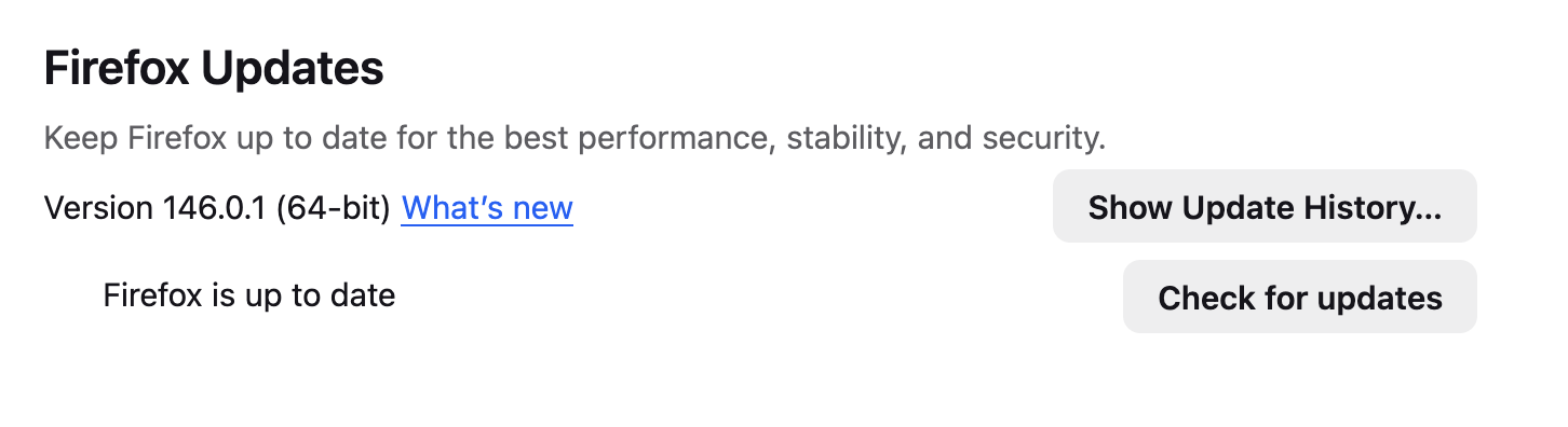 Even the Firefox settings pages (about:preferences) does not render the emoji after checking for updates. Included screenshots for FF 146.X on macOS (issue) and FF 146.X on Windows 11 (working)