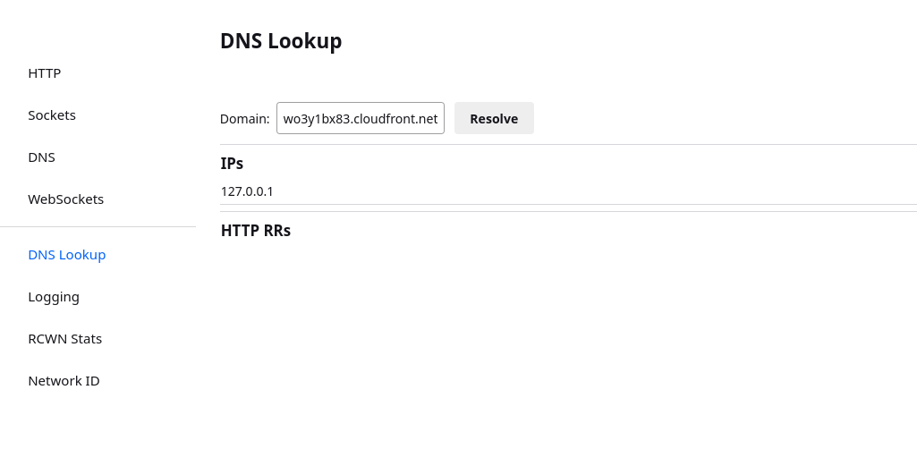 I am using 140 ESR version on linux with Cloudflare's DNS over HTTPS and with DOH active for some reason resolving a domain like d3oklwo3y1bx83.cloudfront.net will resolve to local host IP 127.0.0.1.