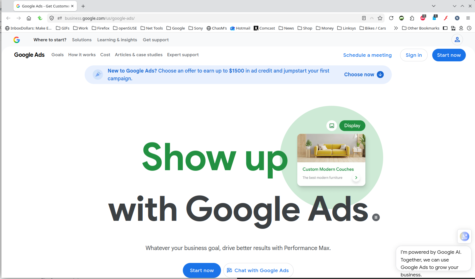 What options are under Advanced? From there you should be able to continue. Your link took me here and it works. see screenshot https://business.google.com/us/google-ads/