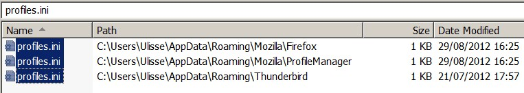 Check the profiles.ini file Firefox, Thunderbird, and SeaMonkey 2 look for the profile folder based on the information stored inside the profiles.ini file (see the linked article for details). You can use a text editor such as Notepad to open the "profiles.ini" file to see what information it contains. Here is an example: