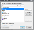 - In the dialog box that pops up (see attached screenshot), click on the search engine you would like to remove (Google) and the "Remove" button, repeat this step for Twitter