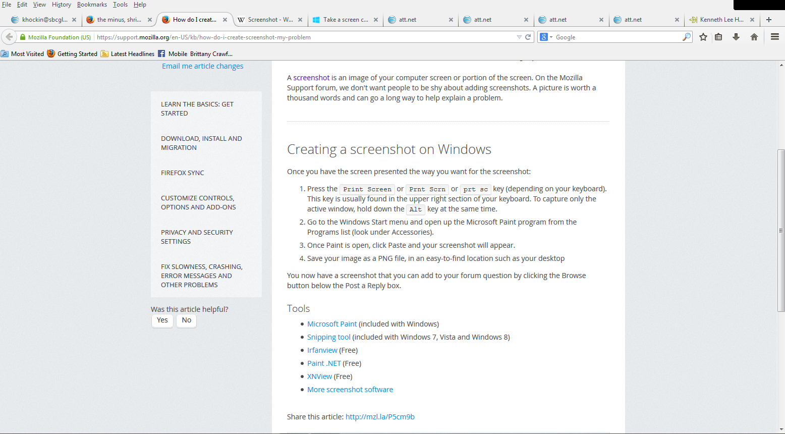 Please note; the screen shot add-ons that are available for Firefox will only take of the window contents. Not the window itself. Windows > Start > search box > Snip. Select Snipping Tool. Save the picture(s) to your desktop.