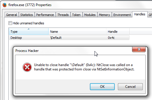 The firefox.exe VERY VERY STUBBORNLY continues running. I have even tried to unload all the modules the process has loaded (over a 100 of them) but the process did not budge. I also closed all the handles the process is holding, except one which kept throwing an error (even after I removed the Protected flag on it).