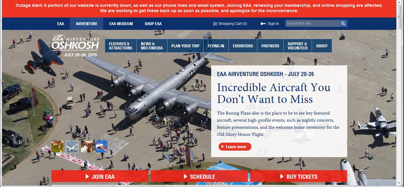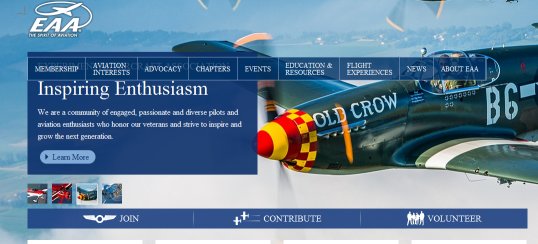 The horizontal menu should be displaying to the right of the EAA Oshkosh AirVenture logo.