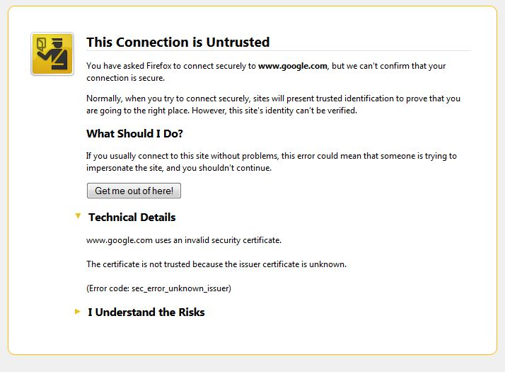 - Click the link at the bottom of the error page: "I Understand the Risks"