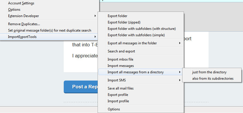 I downloaded and installed the import/export tool extension, but still can't get the address book. Your instructions said to select the "import all EML files from a directory". There is no such option in the import/export tools.