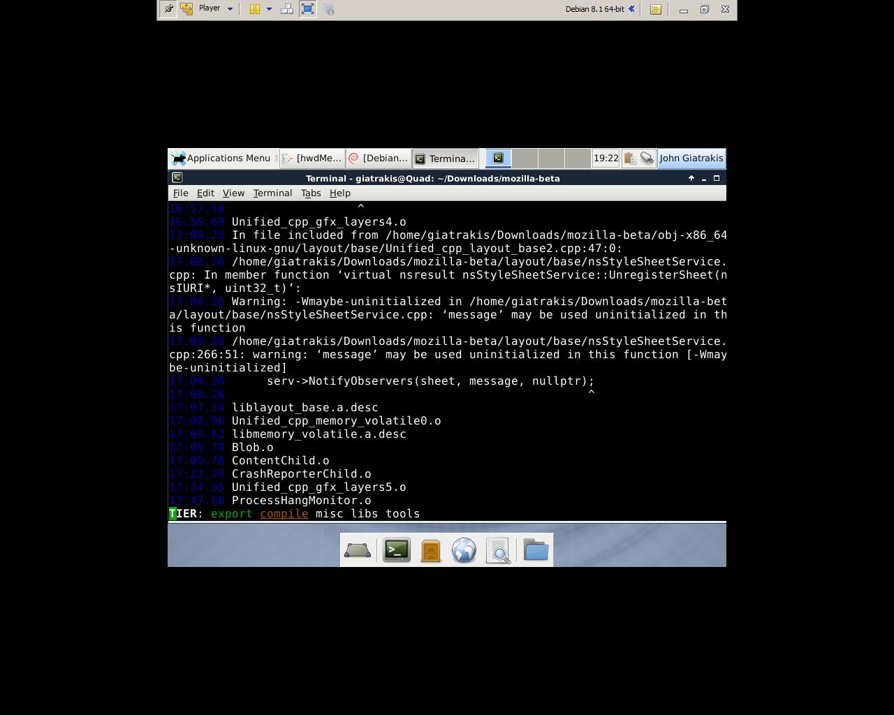 Look and the funny part i just finish downloading the workstation and is asking me in order to install to close the debian 8.1 the fact is all this the make is running and sometimes i feel it will never finish!? the 40.0b9 was running without an error but the make is making the cores to work in full speed all this time 2 cores are not enough for this kind of job.