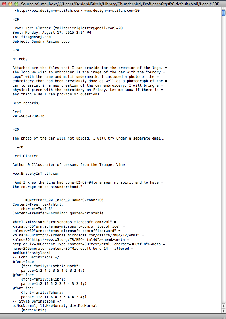 I cannot see the last part of source which has the html info in the email signature, but I certainly looks like they have created a signture using MSWord and then used it in emails. Or If they are typing in Word and copy pasting into email, then they would also be bundling a load of 'hidden' html coding into the email. This has the effect of sending loads of unnecessary html code bloating the email. Cambria Math is a font which handles advanced math features eg: equations. Why they are using Cambria Math is anyone's guess.