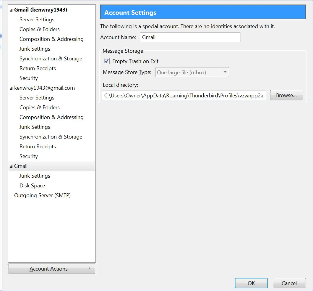 Why did you rename "Local Folders" to "gmail"? Users do this and I don't know what they're trying to achieve.