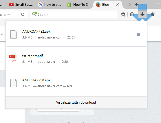 Yes, switching from maximized to resizable restores back the blue arrow. But it's very frustrating to resize the window after each download.