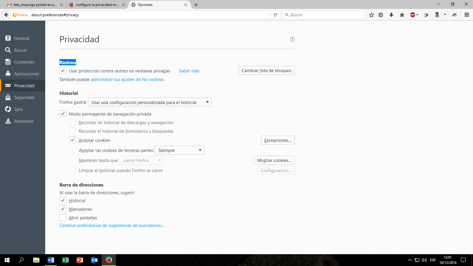 configuro la privacidad me pide reiniciar para que los cambios tenga efecto pero sigue igual no toma los cambios que indico