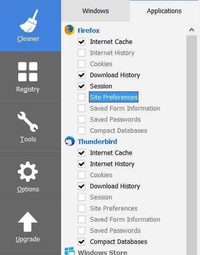 In my screenshot below I show my normal settings in CCleaner for Firefox and Thunderbird (just so you what you are looking for).