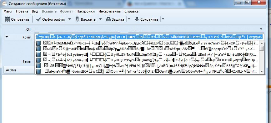 If I try to send a letter and write any address at the address line I got the list of symbols there (see attached picture please).