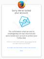 "The confirmation email we sent to xxx was returned and we’ve locked your account to protect your Firefox data."