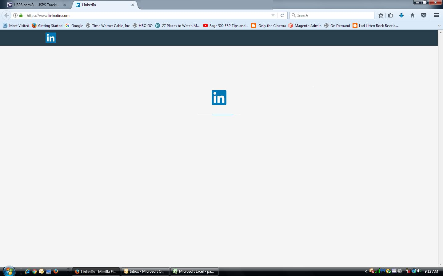 Landing page will not finish loading when navigating to LinkedIn.com from a tab other than initial home page in version 52.5.2 (32-bit)