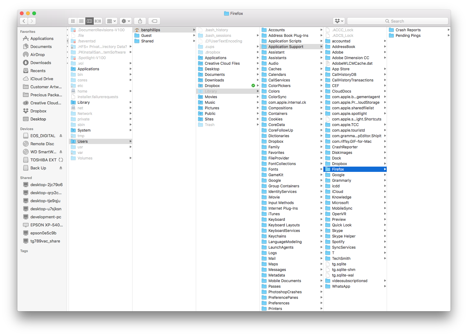 - Library/ 'Thunderbird' folder.