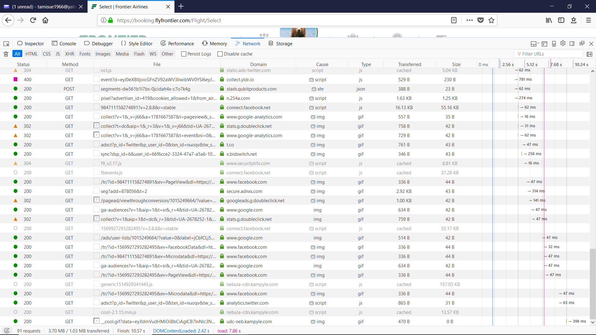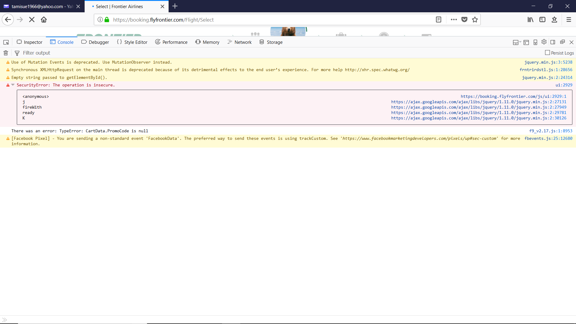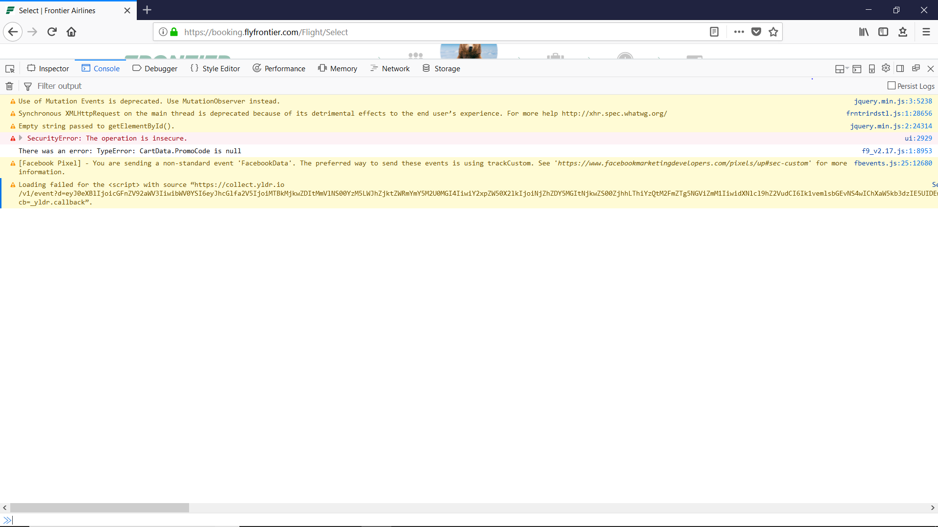 I don't have any problems with any websites except for flyfrontier.com I used to be able to search and connect but now I can search flights but it will not connect and show results. I have cleared cache and history I have uninstalled and re installed firefox