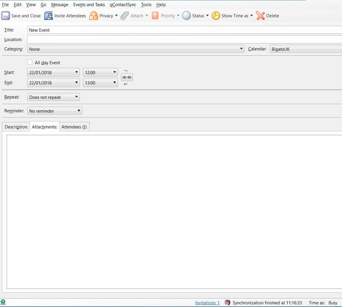 The 'Attachments' tab appears in the calendar entry, which I click on and nothing else appears. Right-clicking in the area below the tab shows 'Attach Web page', but shaded out; so not of use.