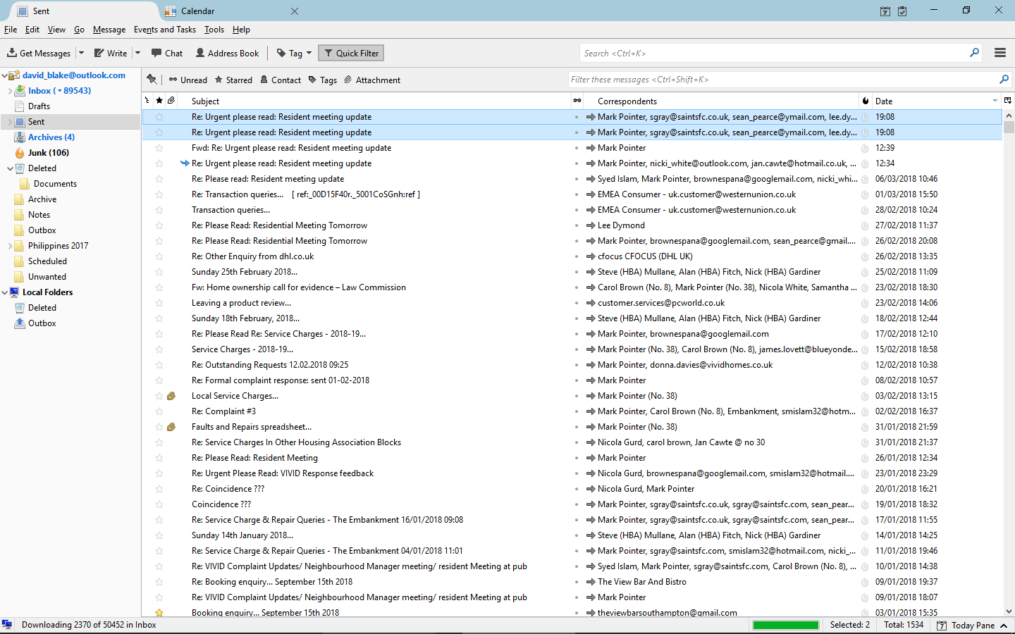 Just started using T/b and all my Sent messages are showing in the Sent folder twice!