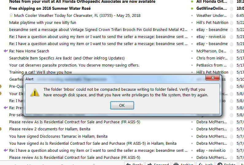 - When Inbox is empty, right click on folder and select 'Compact'.