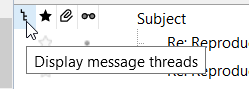 If you want strict chronological order, you may wish to turn off threading. You can do that in the View|Sort By menu too (View|Sort By|Unthreaded), or you can click the relevant column button in the list. Again, it will toggle between its two states, in this case, off and on.