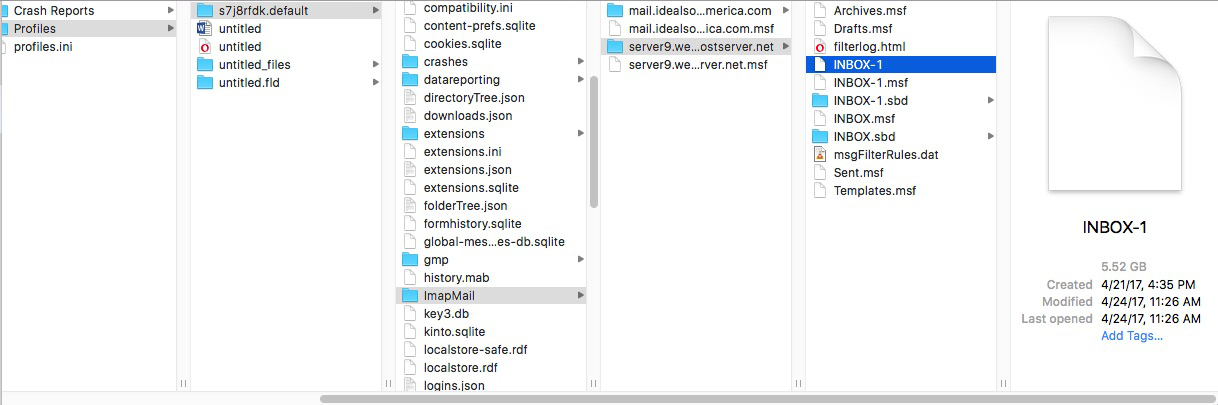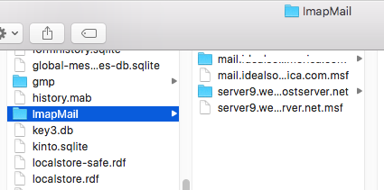 Access profile folders: ~/Library/Thunderbird/Profiles/<Profile name>/