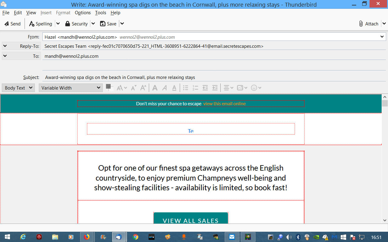 we have seen your picture of the very striking red lines that appear in your browser on Thunderbird mail yes.