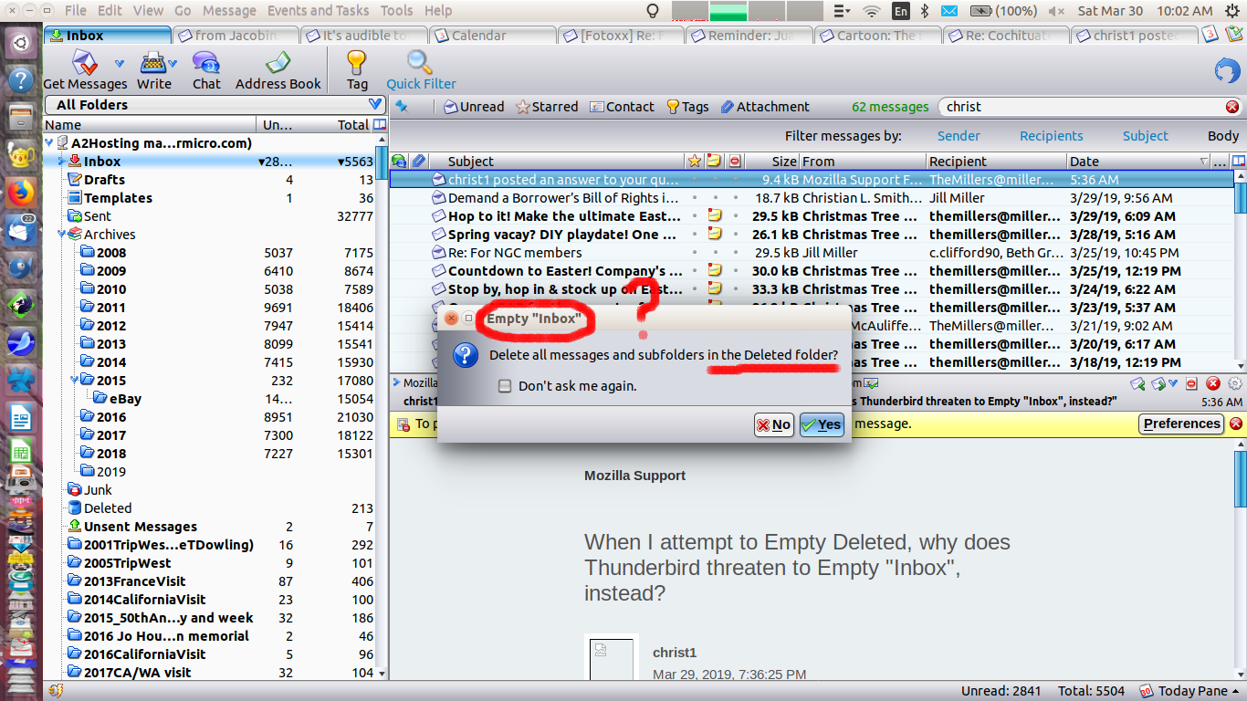 - "why does Thunderbird threaten to Empty "Inbox", instead? The top line of the resulting dialog box reads Empty "Inbox". Shouldn't it read Empty "Deleted", instead?