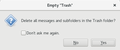 If you have ANY folder active when you do File > Empty Deleted, the action will be correct BUT the message-box TITLE wrongly threatens to "Empty (THAT folder)", instead of to "Empty Deleted"!