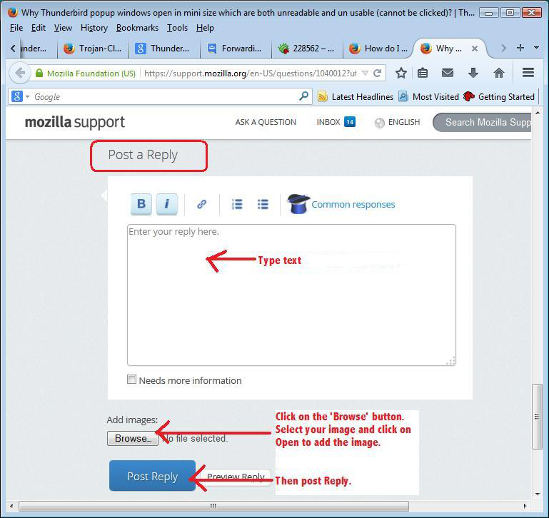 You still need to post the image. See my image below as a guide. In this forum question In a 'Post a Reply' text box type some text saying image below or similar. Click on 'Browse' button A window will open and you locate the saved jpg image. click on 'Open' . when image has loaded click on the 'Post Reply' button.