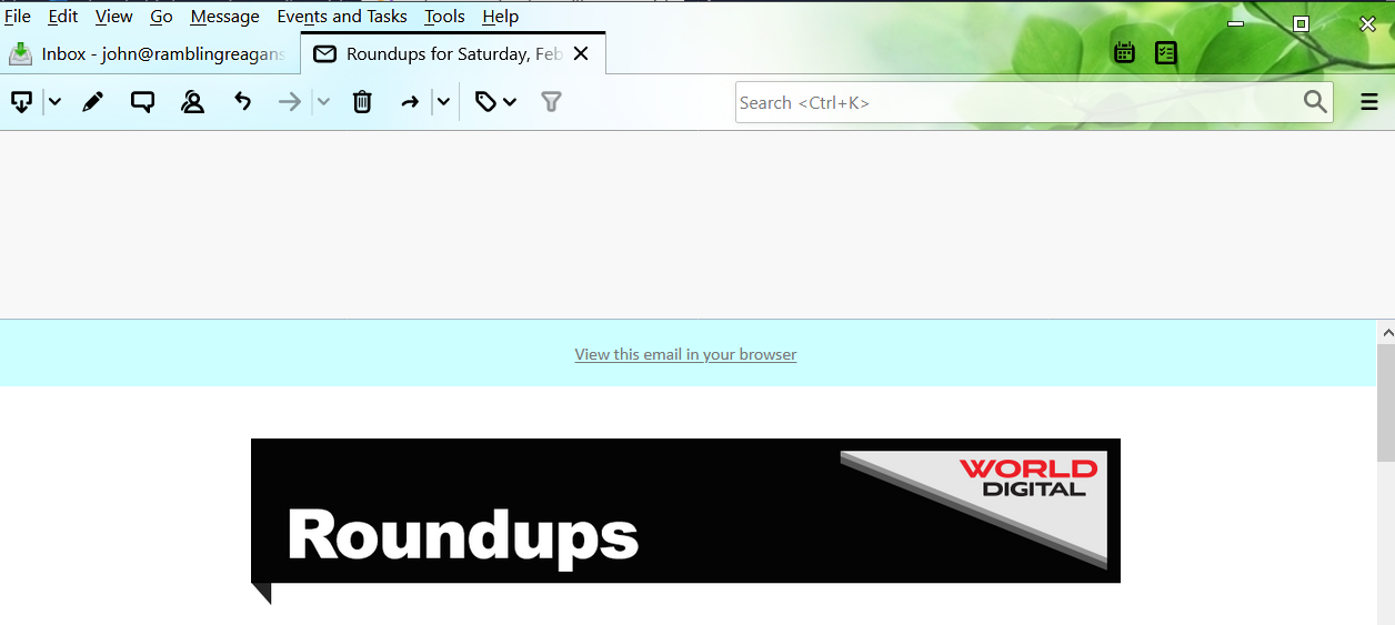 I'm using version 73.0b2. I'm used to having a grey bar at the top of an opened email. The bar contained sender info and some other useful information. (Used to be that we could minimize this, but, sadly, that functionality was taken away some time ago.) Now the bar is even deeper, using up a lot of vertical screen space, and totally blank. I updated to version 73.0b2 to try and fix the problem and it didn't work. Now we've even lost the use of ctrl-plus & minus to adjust text size in the message. Am I missing something or should I just try to find an older version to re-install?