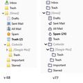 To clarify the issue here is a snapshot comparing version 68.8.0 and version 77.0b2 on the same account, default theme, no add-ons:
