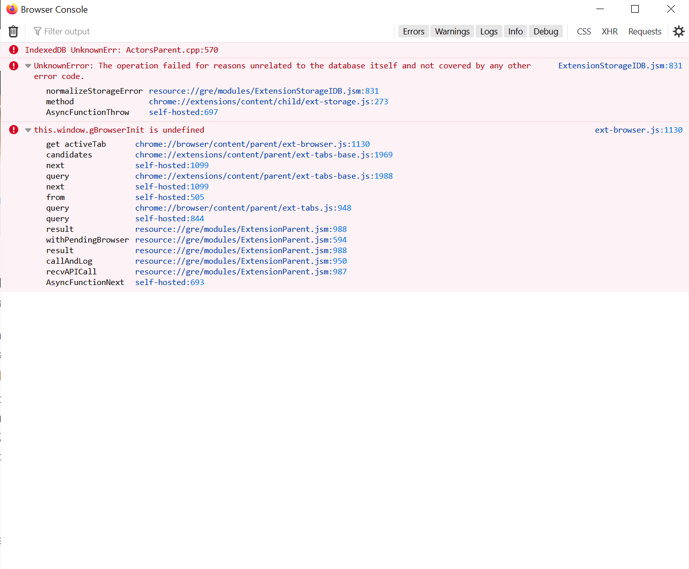 So, that looks like a problem with extensions storage that encounters an unknown error.