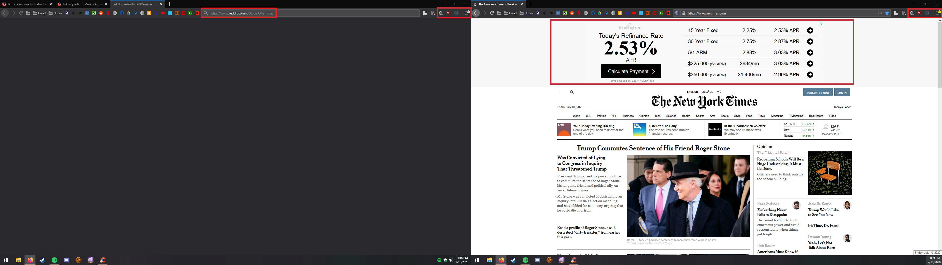 This started happening a few days ago. Since then I have done a clean install of windows (which was needed anyways) but to no avail. It is probably something stupid I managed to mess up in Firefox, although I would have no idea what that would be as I haven't changed anything advanced since the clean install.