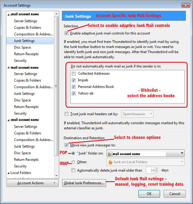 Then when you get Junk, mark it as Junk and after a while Thunderbird learns and those emails should get filtered correctly. then you can empty the Junk folder periodically and compact the folder.