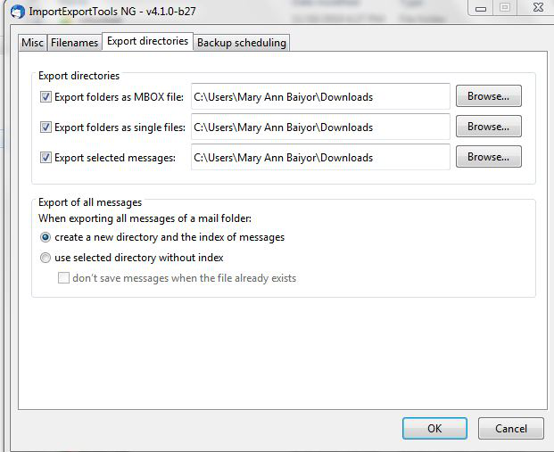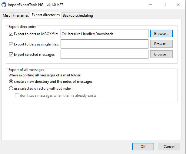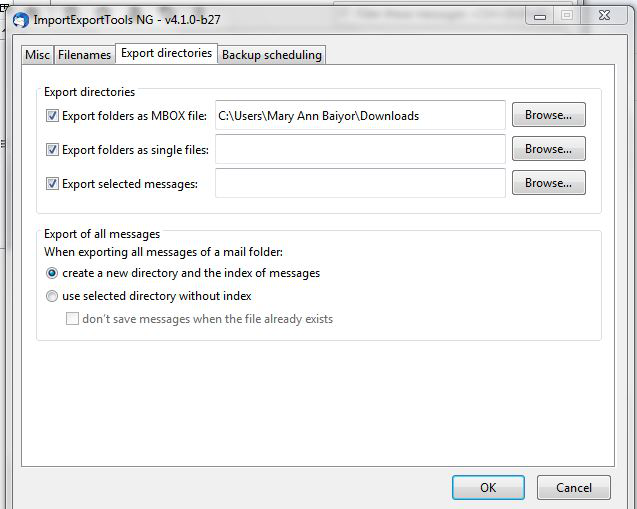Okay, I've downloaded the add-on and installed it in TB. I'm not quite sure how to download all the headers into a file, although I think it might have something to do with 'Tools/AddonOptions/ImportExportTools NG' and then select the 'Export Directories' tab. However, after that I'm lost. Where do I find these files that will be exported and which of the options do I select? Screen shot attached.