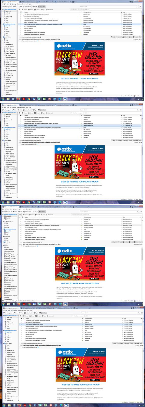 See image that shows 4 different senders that have all the same email.