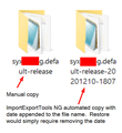 For reference, here is a snapshot of the manual and automated copies of the profile backups. Note file name has an appended date on the automated copy. The file names are partly obscured for security.