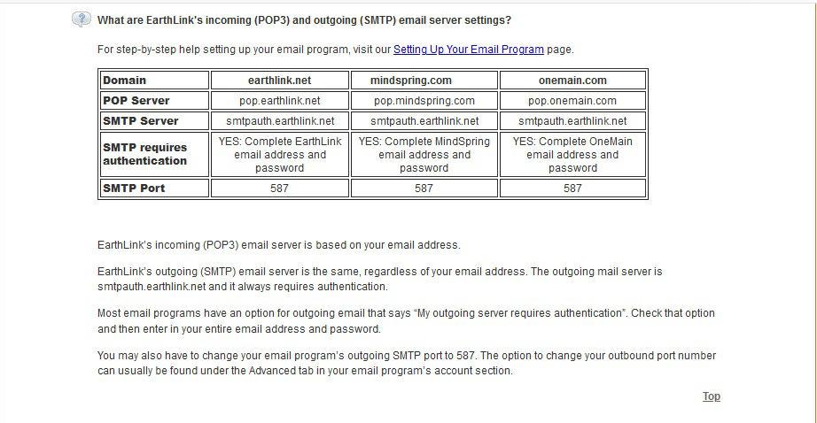 Mail and News Accounts account1: INCOMING: account1, , (pop3) pop.earthlink.net:110, 2, 4 OUTGOING: , smtpauth.earthlink.net:587, 2, 4, true