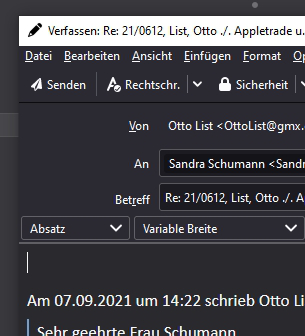 Bislang hatte ich keine Probleme mit Thunderbird, konnte meine E-Mails versenden. Nach der Installation von Thunderbird Version 91.0.3 kann ich keine E-Mails versenden (senden, beantworten oder weiterleiten).