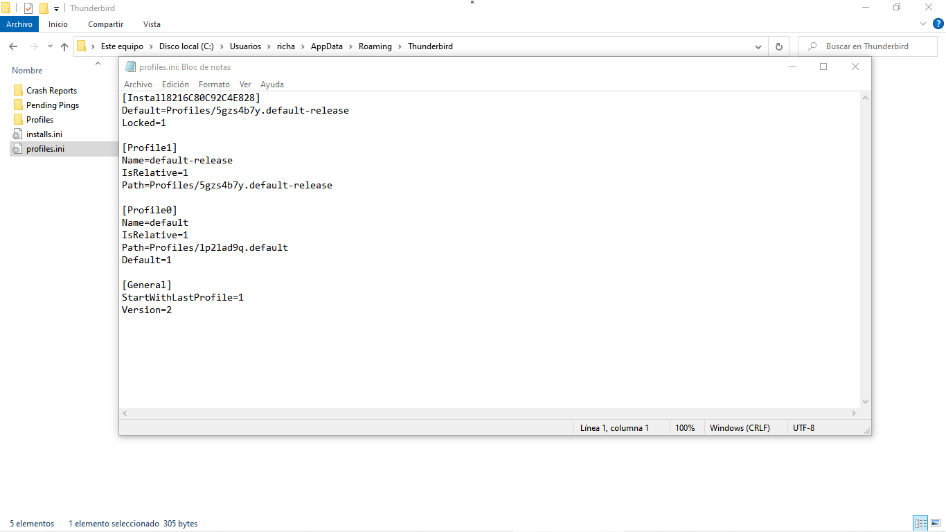 - Abre una línea de comandos y ejecuta la siguiente orden: Ruta_donde_tengas_instalado_Thunderbird>\thunderbird.exe -P