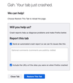 In the address box, type about:crashes<enter>. Note: If any reports do not have BP- in front of the numbers/letters, click it to submit them.