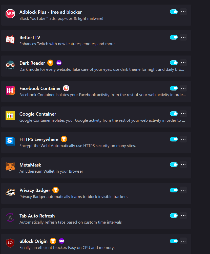 Have my extensions in the images. I've had these extensions for a long time at this point, I'm not sure if they would be the culprit or not.