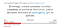 Al enviar correos con archivos adjunto indica que no se puede enviar por "el correo tiene caracteres no validos(caracteres de avance de línea de avance vacíos) pero si el mismo correo lo envio desde outlook web, no tengo problemas